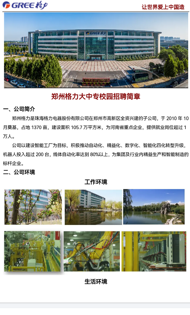 郑州格力大中专校园招聘简章