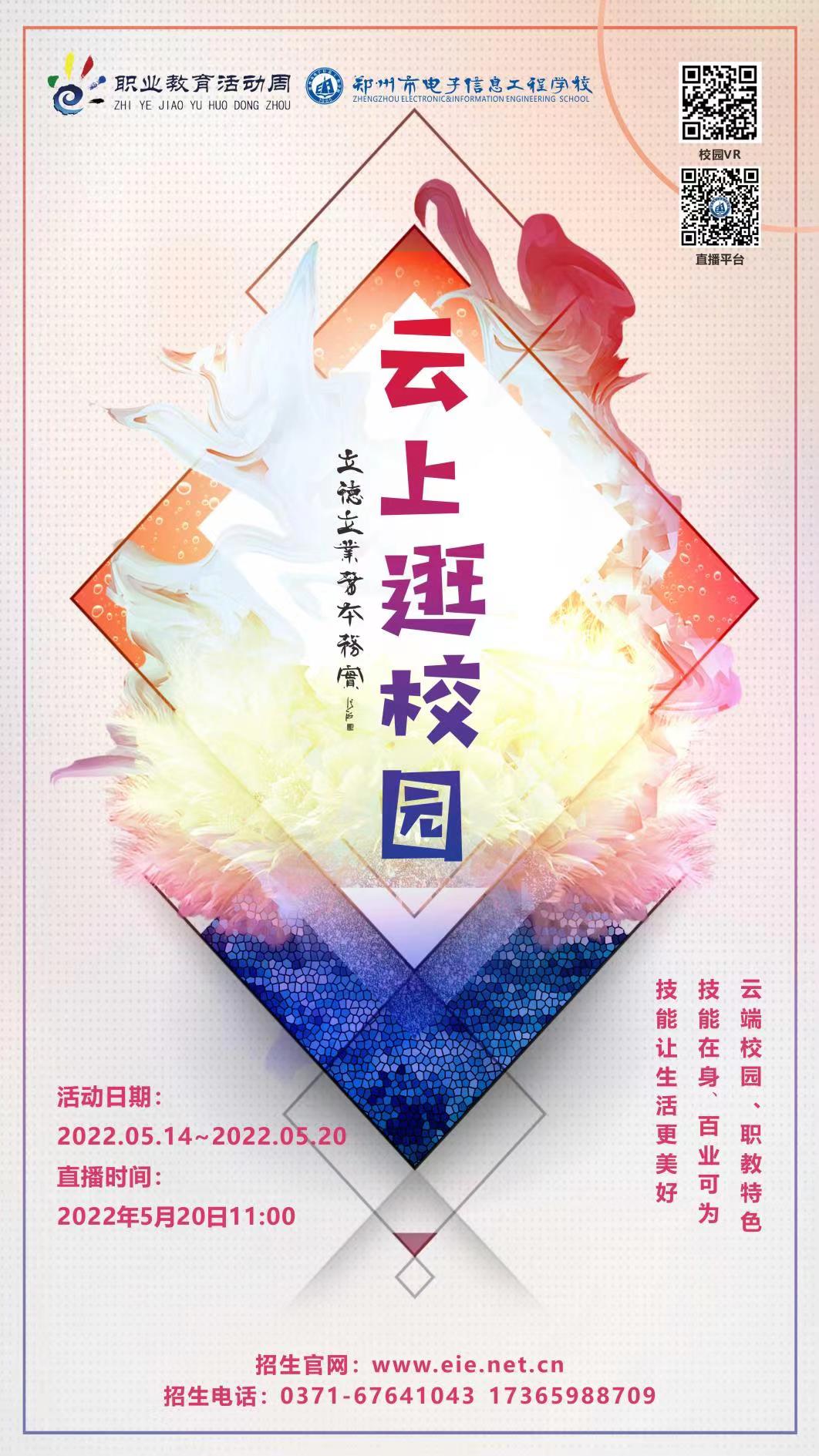 2022年职教宣传周是新修订的职业教育法正式施行后的第一个活动周,为了展现职业教育特色和我校的高质量发展,我校定于5月20日(周五)上午11:00,通过微信视频号直播平台带您参观郑州市电子信息工程学校,云游学校环境,欣赏学校教学实训条件,解读学校专业,展现我校师生风采以及学校办学成果。并可以现场互动,提前了解今年的中招政策。