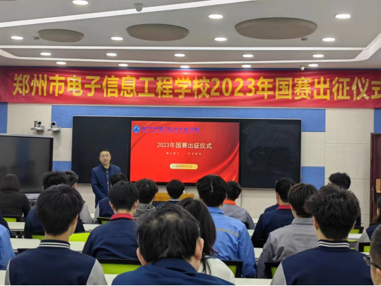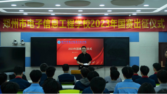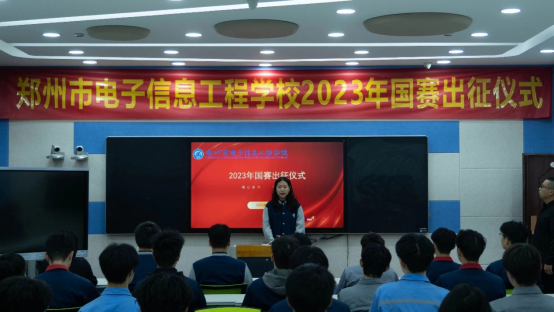 为积极响应习近平总书记对职业教育工作关于加快构建现代职业教育体系,培养更多高素质技术技能人才的重要指示,以积极饱满的精神状态迎接2023年国赛职业技能大赛,郑州市电子信息工程学校于2023年5月9日在务实楼二楼录播教室举行了2023年国赛出征仪式,李京辉校长、李向伟校长、余蓉校长以及各赛项辅导老师参加会议。