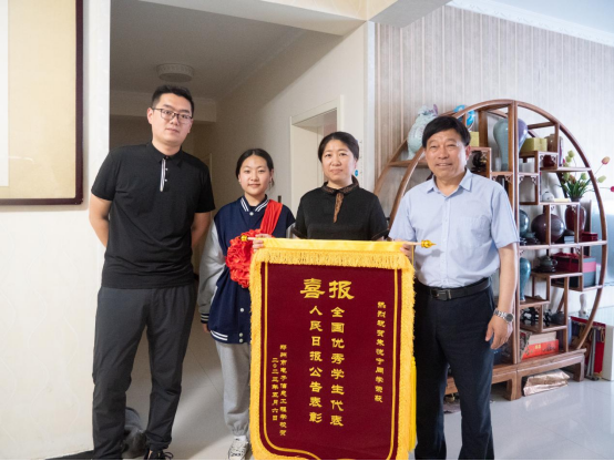 5月17日下午,郑州市电子信息工程学校副校长高勤华,艺术设计系副主任张谦,班主任叶思阳一同前往优秀学子朱悦宁家中送喜报,并授予其锦旗,祝贺朱悦宁在校期间取得的优秀成绩。同时,朱悦宁同学的父母真诚地感谢郑州市电子信息工程学校的领导老师们,为孩子创造了优越的学习成长环境,感谢老师们辛勤的付出。